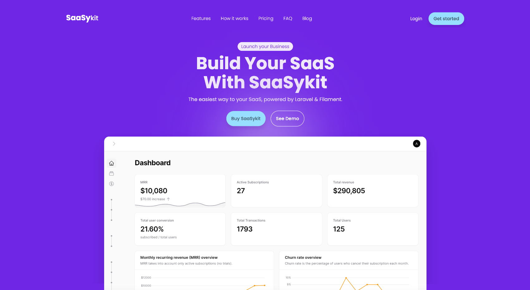 SaaSykit is built on top of Laravel with the intention to save you time and effort by not having to build everything needed for a modern SaaS from scratch, like payment provider integration, subscription management, user authentication, user & role management, having a beautiful admin panel, a user dashboard to manage their subscriptions/payments, and more.
