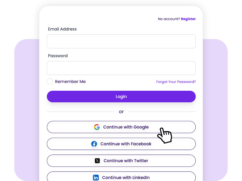 SaaSykit includes built-in user authentication, supporting both traditional email/password authentication and social login options such as Google, Facebook, Twitter, Github, LinkedIn, and more.
